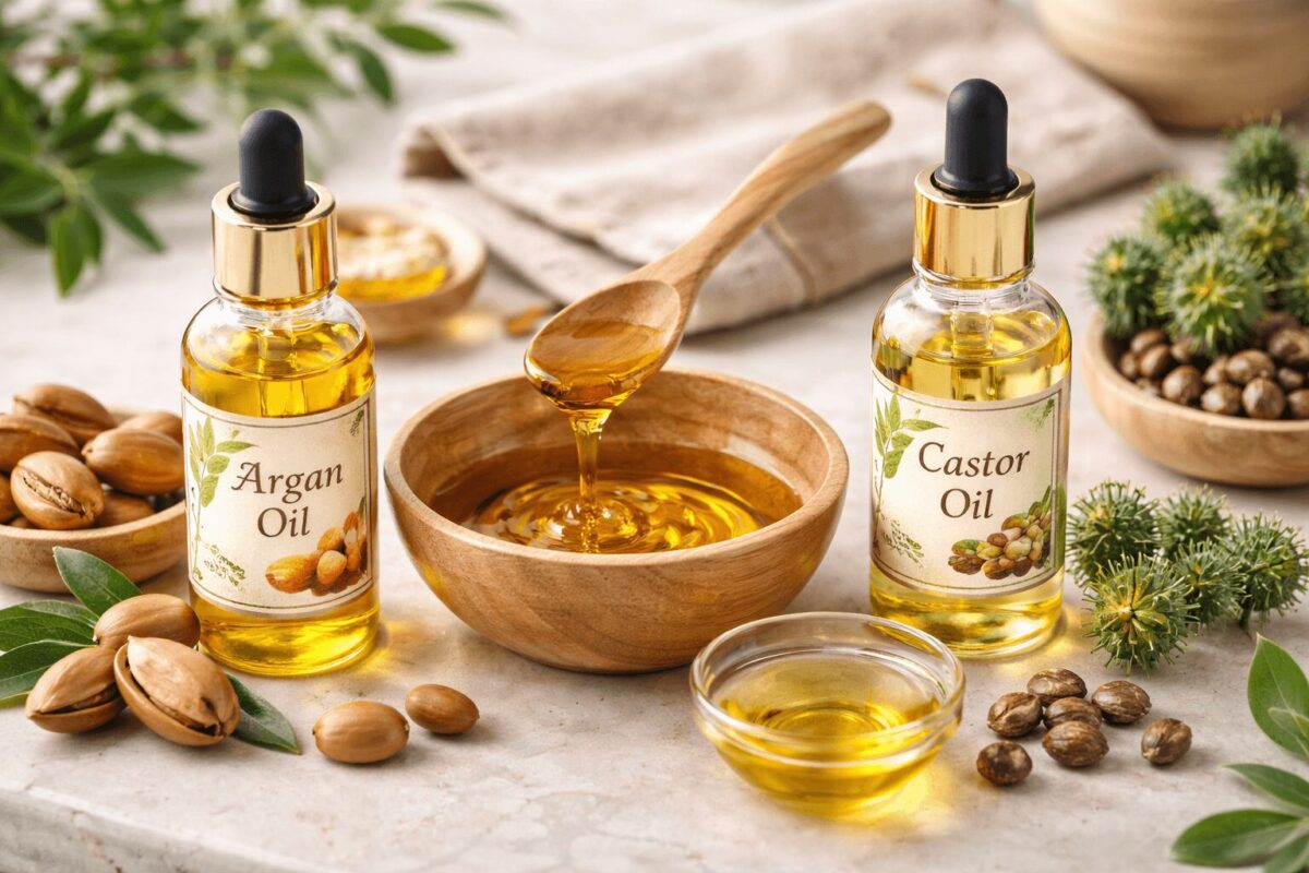 - Arganovo ulje + ricinus: Arganovo ulje je poznato po obnavljajućem dejstvu i sjaju. Pomešajte ih u razmeri 1:1 ili 1:2 (više arganova za lakšu formulu). Daje zaštitu od spoljašnjih uticaja i smanjuje lomljenje kose. Pogodno za sve tipove kose, posebno farbanu i suvu.