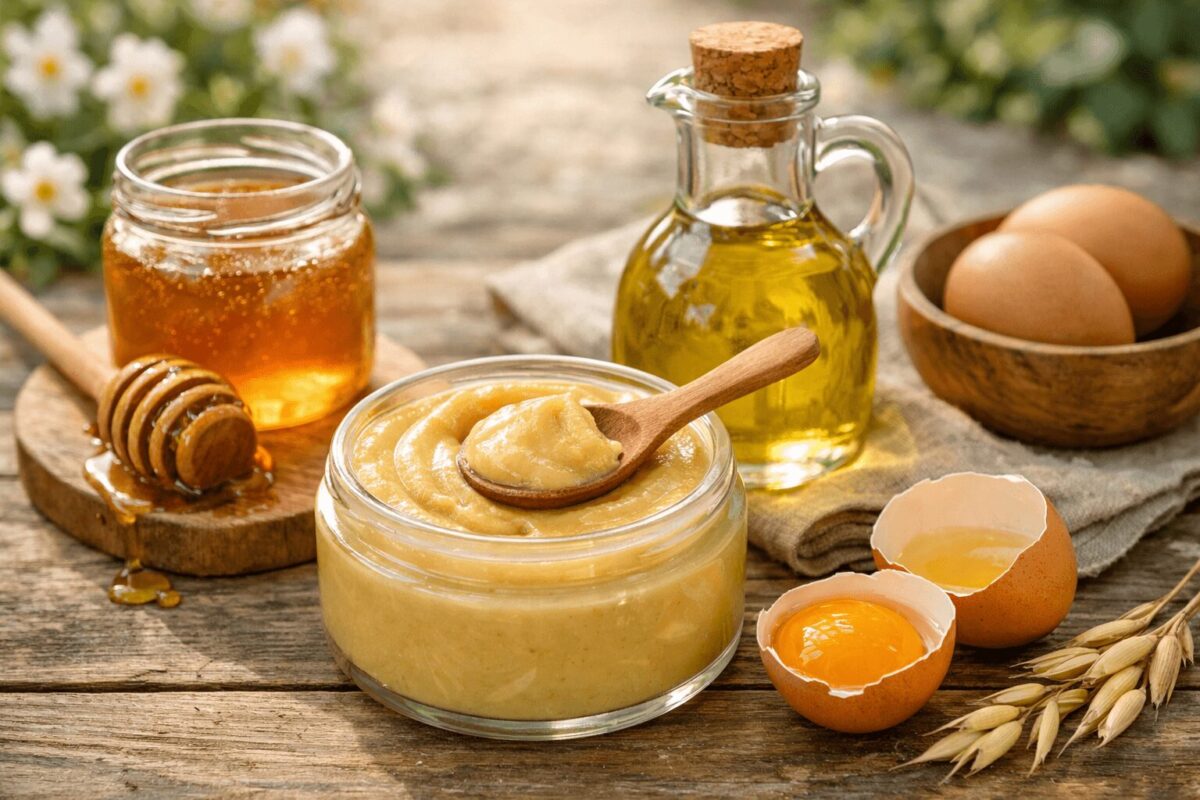 - Maska od jajeta i meda: Jaje je prirodni izvor proteina i vitamina (A, B, D), a med je humektant koji privlači vlagu. Zajedno čine moćan duo za ishranu kose. Jedan klasičan recept je da umutite jedno ili dva žumanceta sa kašikom meda i kašikom maslinovog ulja. Nanesite ovu smesu duž cele kose, od korena do vrhova, i stavite kapu za tuširanje ili plastičnu foliju. Nakon 20-30 minuta, temeljno isperite (mlakom vodom) i operite kosu. Ova maska obezbeđuje kosi proteine za jačinu i vlagu za mekoću, pa je odlična za slabu i ispucalu kosu.