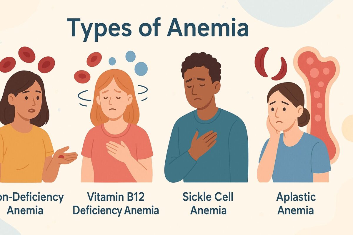 Najpraktičnije je anemiju posmatrati kao završni rezultat različitih uzroka. Zato se tipovi anemije često razlikuju po tome šta je dovelo do problema i kako izgleda krvna slika.