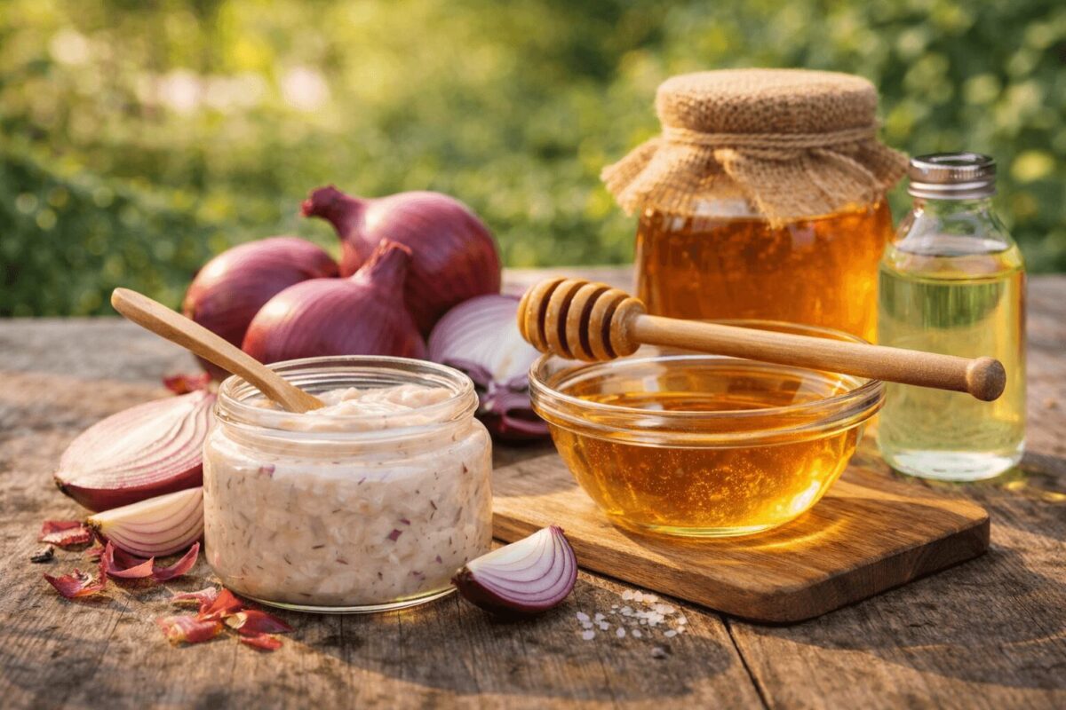 Crni luk: Korišćenje običnog crnog luka za rast kose deluje kao neobičan narodni recept, ali ima određenog osnova. Crni luk je bogat sumporom, mineralom važnim za formiranje keratina – gradivnog proteina dlake. Kada se sok od luka nanese na skalp, sumporne komponente mogu poboljšati proizvodnju kolagena i tako pospešiti rast kose. Pored sumpora, luk sadrži i antioksidante (poput kvercetina) koji štite folikule dlake i mogu odložiti pojavu sedih vlasi. Takođe ima antibakterijska i antigljivična svojstva, što znači da može pomoći u suzbijanju peruti i infekcija kože glave koje ponekad uzrokuju opadanje kose. Mnogi korisnici prijavljuju da im je redovna primena soka od crnog luka ojačala dlaku i ubrzala rast nove kose.