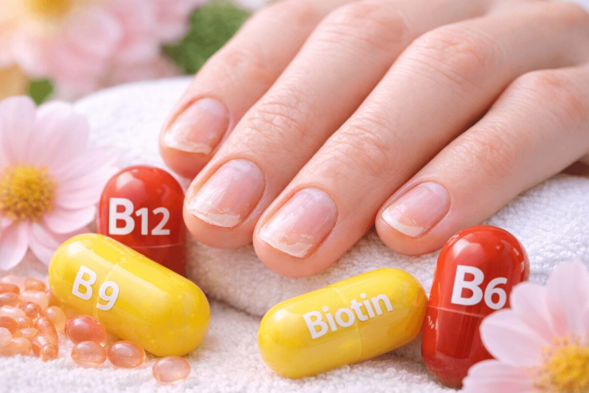 Vitamin B6. Vitamin B6 ima ulogu u metabolizmu proteina i u zdravlju kože i imuniteta. Manjak je ređi, ali može biti povezan sa promenama na koži i sluzokoži (osip, pukotine oko usana, upale), što onda povećava rizik da koža oko nokta puca i da se stalno iritira. Važno je znati i suprotno: previše vitamina B6 iz suplemenata, posebno dugoročno i u visokim dozama, može izazvati perifernu neuropatiju (trnjenje, peckanje, utrnulost), pa ovo nije vitamin za visoke doze bez jasnog razloga.