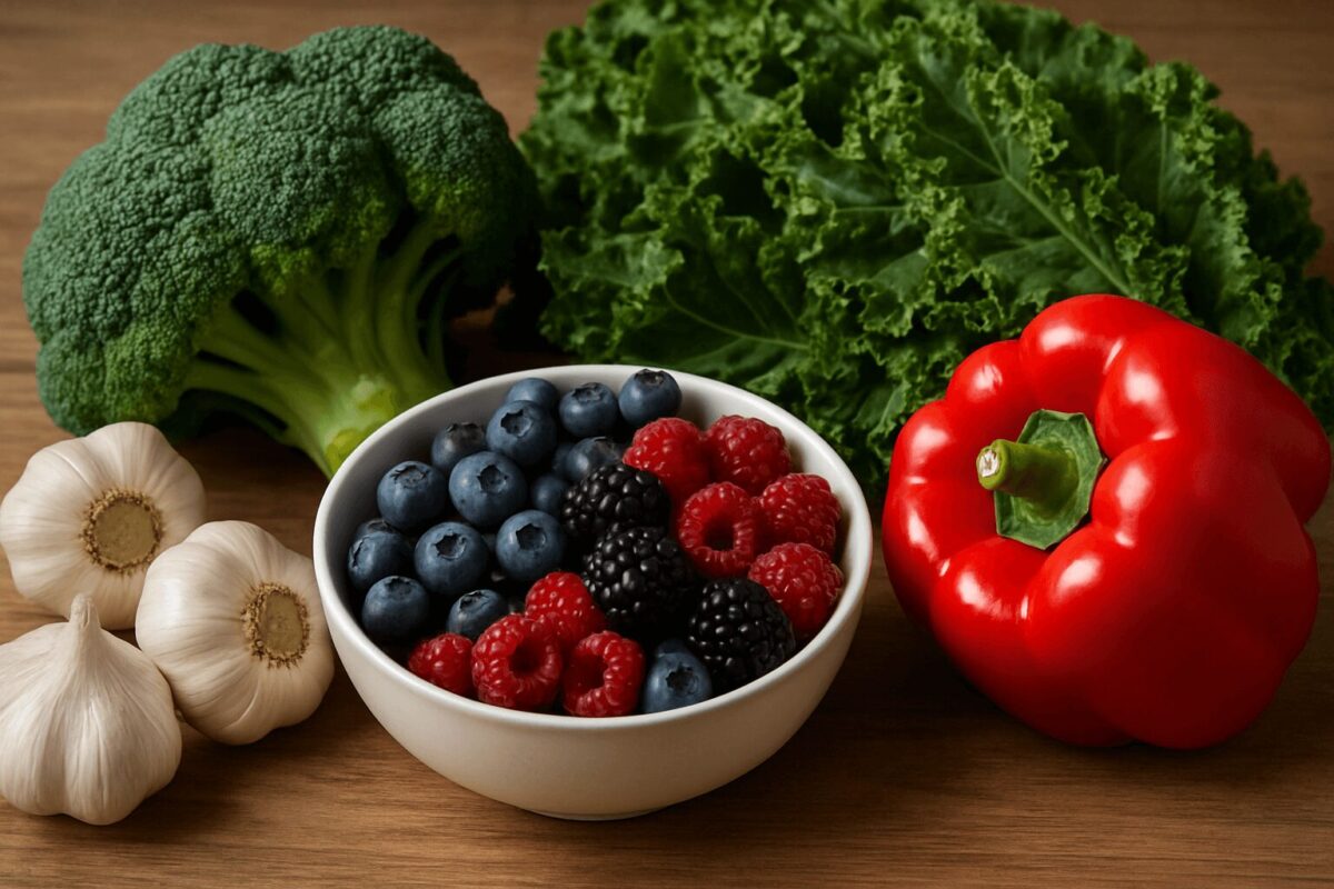 Hrana bogata antioksidansima, naročito šareno voće i povrće, neutralizuje slobodne radikale i smanjuje oštećenje ćelija, pa tako ublažava hroničnu upalu koja može oslabiti imunitet. Uz to, ishrana utiče na creva gde se nalazi veliki deo imunog sistema: zdrava crevna flora, podržana vlaknima i probioticima, dodatno jača odbranu organizma.