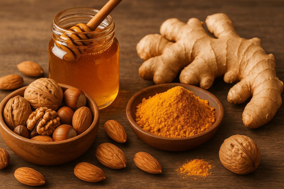 - Med: Sadrži antioksidanse i ima blago antibakterijsko dejstvo. Tradicionalno se koristi za umirivanje grla i kašlja. Umerena upotreba meda može pružiti organizmu korisne bioaktivne jedinjenja i pomoći u smirivanju manjih upala. Napomena: med se ne preporučuje deci mlađoj od godinu dana.