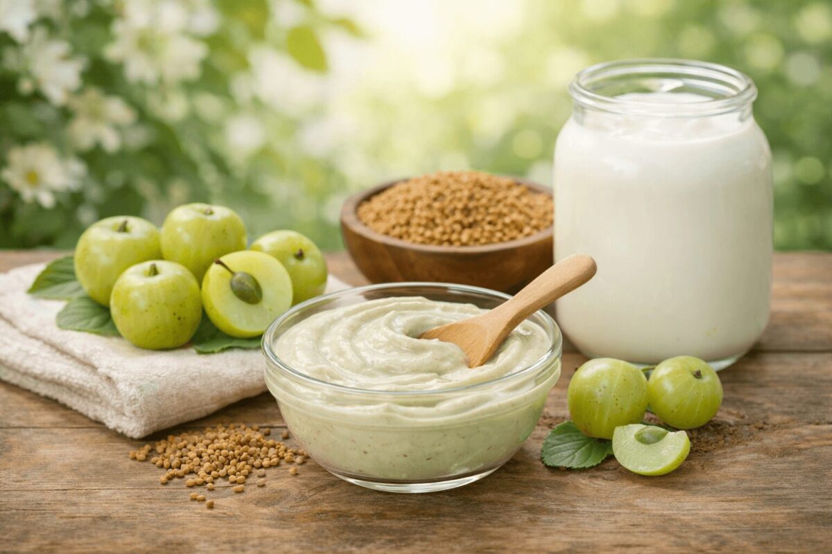 U indijskoj tradiciji nega kose se često zasniva na kombinaciji biljaka i ulja koje hrane teme, jačaju koren i smanjuju lomljenje. Ideja nije samo podsticanje rasta, već stvaranje uslova da folikuli rade stabilno: mirno teme, dobra hidratacija i zaštita dlake duž cele dužine. Najčešće korišćeni sastojci su amla (indijski ogrozd), bhringraj, brahmi, piskavica (fenugreek), hibiskus i kokosovo ili susamovo ulje.