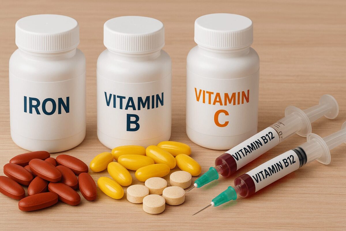 - Dodaci vitamina B12 i folata: ako analiza pokaže deficit B12 ili folata, primenjuju se terapijski dodaci. Vitamin B12 često se daje injekcijama (posebno ako je problem u apsorpciji, kao kod perniciozne anemije), a folna se može nadoknaditi tabletama uz promenu ishrane. Ovi vitamini pomažu normalnoj proizvodnji eritrocita.