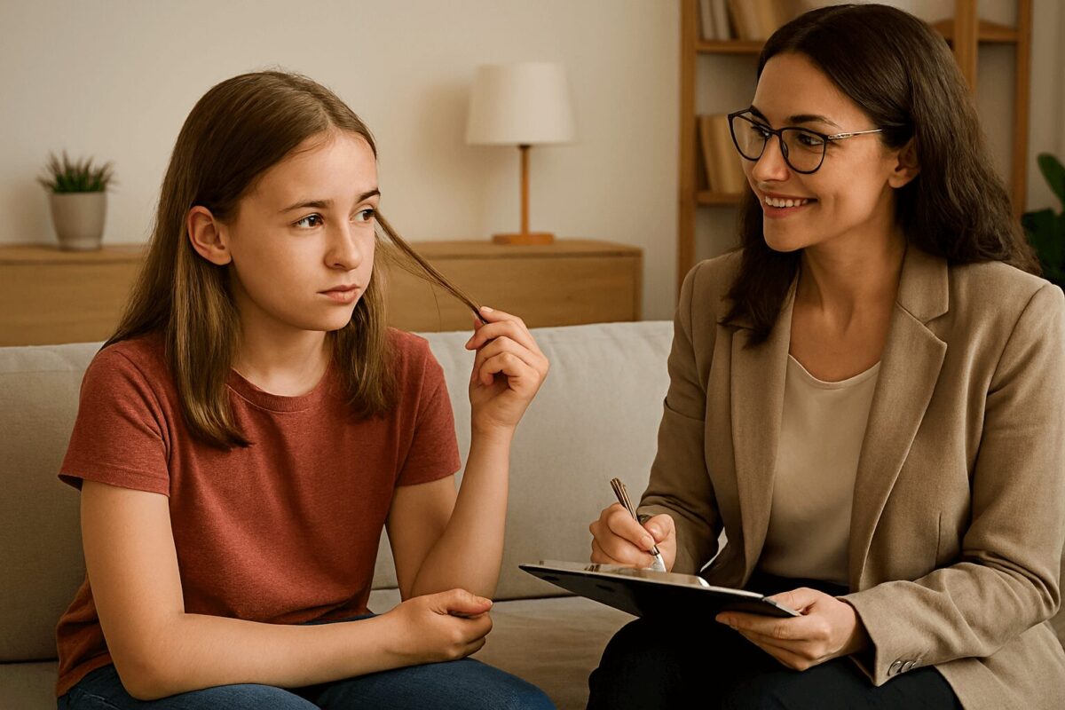 - Trichotillomanija (čupanje kose): Kod ovog stanja ne postoji farmakološki lek za decu, nego se radi na psihološkoj pomoći. Terapija uključuje razgovor sa detetom, objašnjavanje fenomena i primenu tehnika samokontrole. Često se koristi kognitivno-bihejvioralni pristup: dete uči da prepozna izazove (npr. nervoza) koji ga navode da čupa kosu i da ih zameni nekom drugom radnjom (npr. stiskanje antistres lopte). U posebnim slučajevima može pomoći i savetovanje psihologa sa celom porodicom.