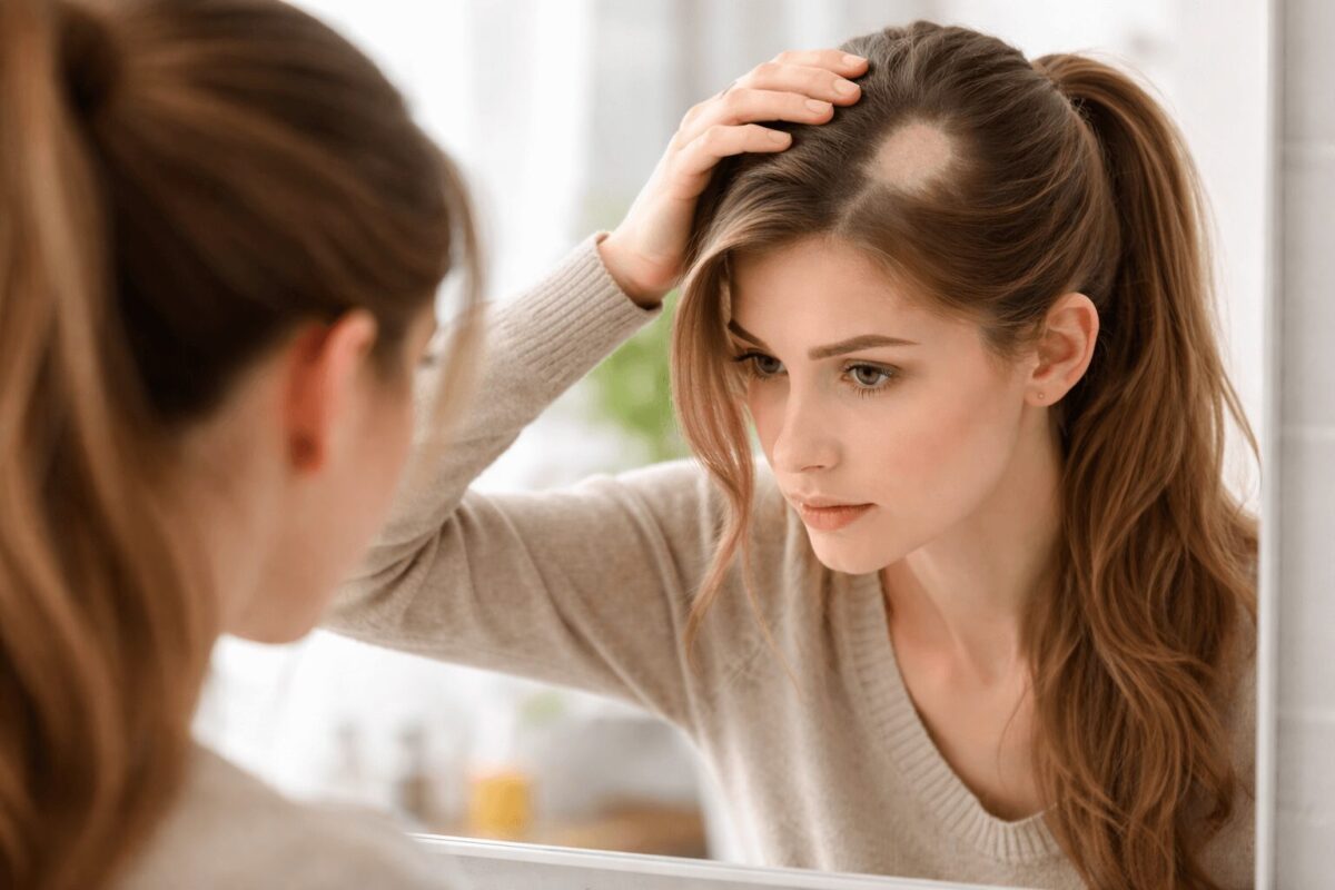 - Pojavljuju se pečati ili proređena područja: Ako primetite jasno ograničeno mesto na glavi gde nema kose (okrugli ćelavi pečat) ili uočite da je kosa mnogo ređa na jednom delu glave u odnosu na ostatak (npr. samo na temenu ili na slepoočnici), obavezno posetite dermatologa. Takvi obrasci ukazuju na alopeciju areatu, gljivične infekcije ili androgenetske alopecije, za koja postoje ciljani tretmani i važno je početi ih na vreme.