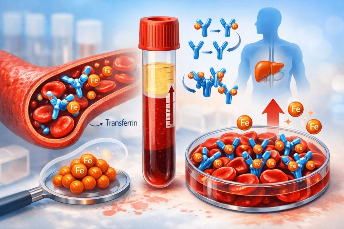 TIBC (Ukupni kapacitet vezivanja gvožđa) pokazuje koliko gvožđa krv može da veže i prenosi. Drugim rečima, TIBC meri potencijal krvi da prihvati gvožđe – koliki je maksimalni kapacitet krvnih proteina da se vežu za gvožđe. Glavni protein za vezivanje gvožđa u krvi je transferin, koji jetra proizvodi. Transferin se u našem organizmu ponaša kao transportni sistem (poput autobusa) koji nosi gvožđe do ćelija gde je potrebno. Prirodno je da je oko trećine veznih mesta na transferinu popunjeno gvožđem, a ostatak je slobodan za dodatne količine gvožđa. Zato TIBC ne meri koliko gvožđa trenutno imate, već koliko gvožđa taj protein može maksimalno da ponese.