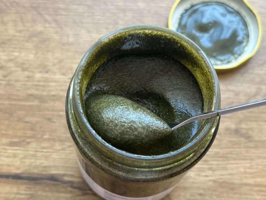 Kada je smesa pripremljena, prespite je u potpuno čistu staklenu teglu (bez mirisa i hemijskih ostataka) i ostavite da miruje 24 do 48 sati. Tokom tog perioda povremeno lagano prevrnite ili okrenite teglu kako bi se seme i med što ravnomernije povezali. Ako koristite tečan, nekristalisan med, imajte na umu da će se semenke s vremenom prirodno podizati ka površini, što znatno otežava postizanje ujednačene, homogene mase direktno u tegli. Kristalisan med u velikoj meri rešava ovaj problem — smesa ostaje stabilna i ne odvaja se, pa gotovo da nema potrebe za dodatnim mešanjem. Ipak, kristalisan med je gušći, te će za njegovo potpuno sjedinjavanje sa semenom često biti potrebne “pojačane” ruke i malo više strpljenja.
