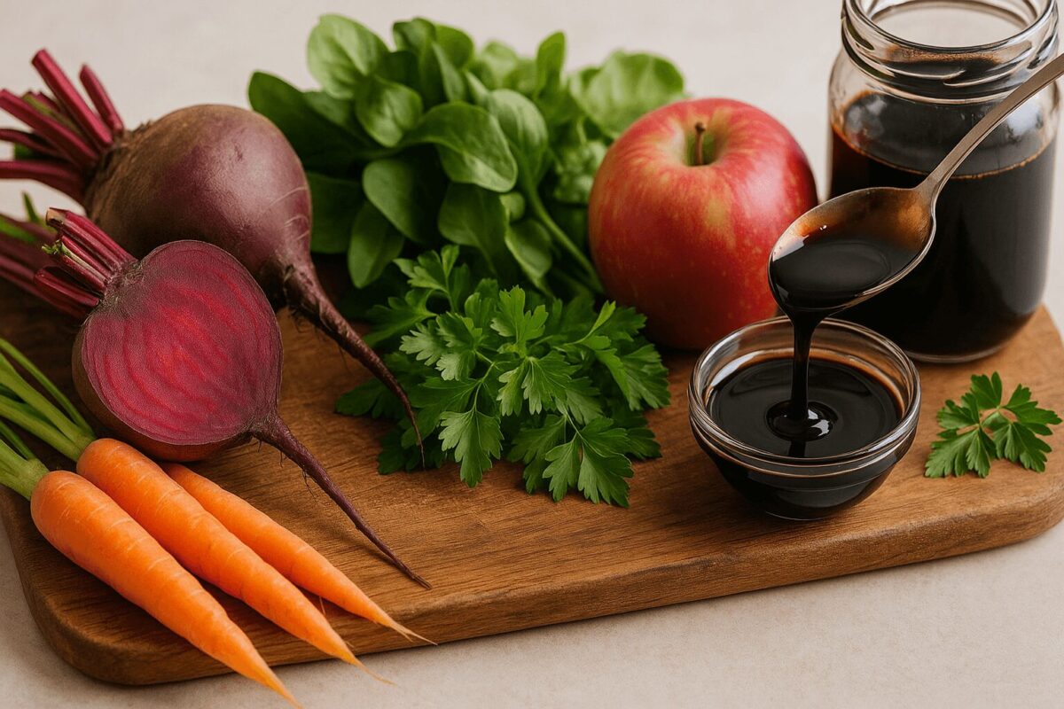 - Crni sirup (melasa): Melasa od šećerne trske, posebno tzv. crna melasa (blackstrap molasses), tradicionalno se koristi za podizanje gvožđa jer je prepuna minerala (gvožđe, kalcijum, magnezijum). Može se uzeti kašičica dnevno kao dodatak.