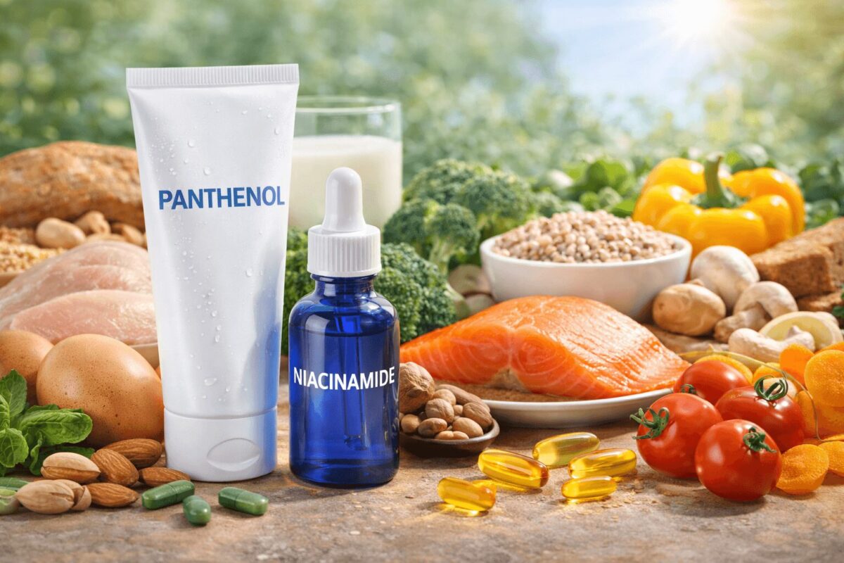 Niacinamid (B3) u kremama i losionima može poboljšati hidrataciju i funkciju kožene barijere; u studijama na suvoj koži viđeno je poboljšanje izgleda suvoće i smanjenje gubitka vode kroz kožu tokom vremena.